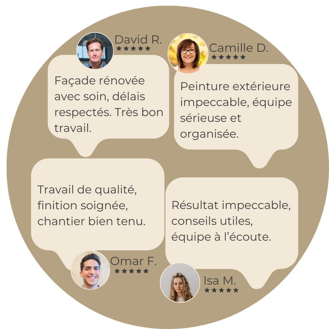 Nous utilisons des peintures extérieures professionnelles, résistantes aux intempéries, aux UV et à l’humidité.